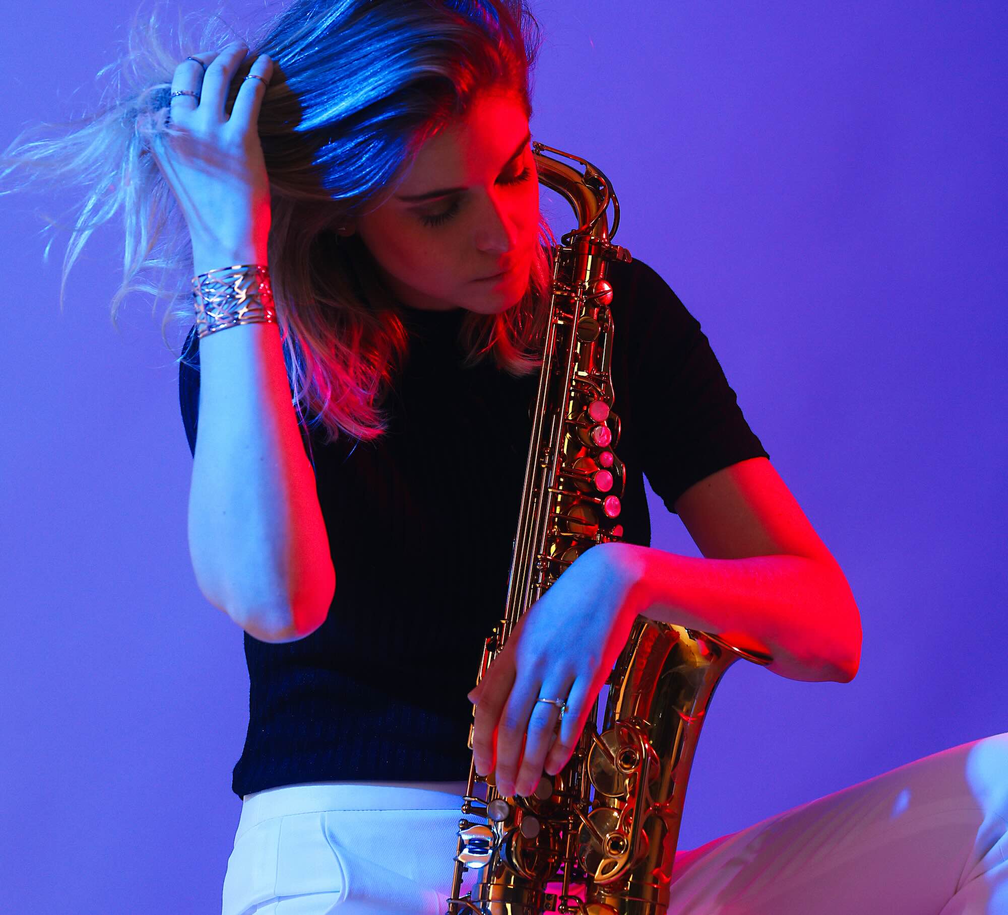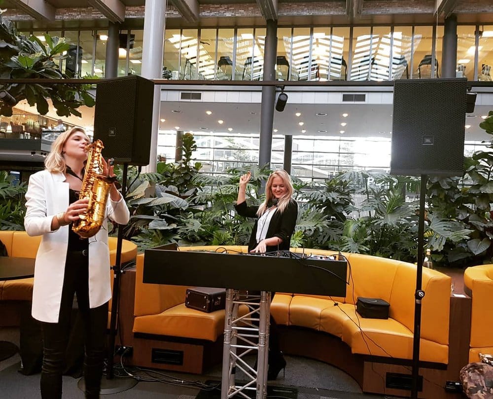 Vrouwelijke DJ met saxofoniste